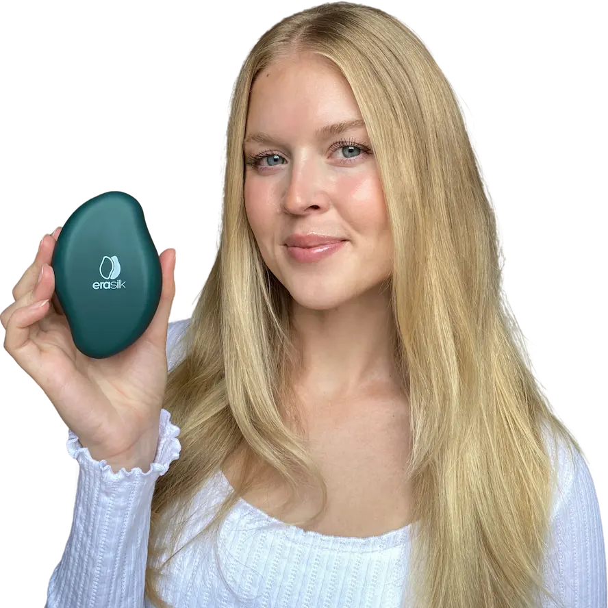 Erasilk uses a smooth nano glass surface created with the latest nanotechnology. When gliding the Erasilk hair removal tool over the skin, it gently and effectively removes hair without causing pain or discomfort.